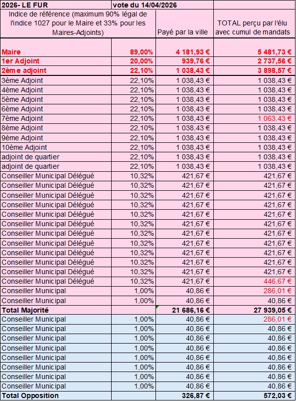 37. Fixation du montant des indemnités de fonction du Maire, des adjoints, des adjoints de quartier, des conseillers municipaux délégués et des conseillers municipaux → Cette délibération fixe la répartition de l’enveloppe indemnitaire entre les élus de la majorité municipale.